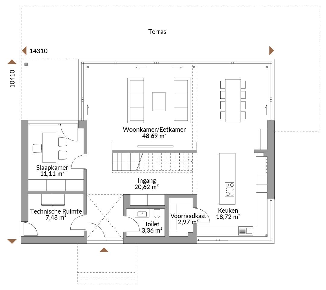De Vision 227 is een woning als geen ander. Ondanks de traditionele vorm met een zadeldak oogt het alsof ze uit één mal is gegoten: geen dakoverstek, geen uitstekende elementen. In plaats daarvan zijn er verrassende details en architectonische accenten die meteen de aandacht trekken.